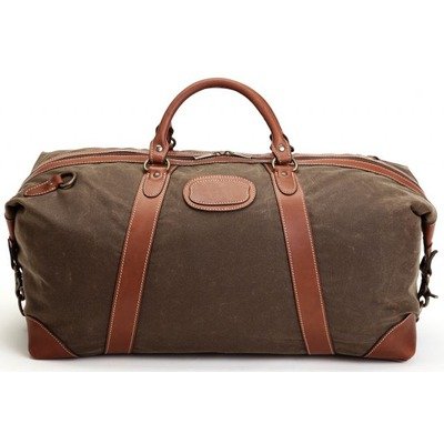 L3044OL Features: -Olive canvas with Brown leather trim.-Wax Canvas with Antique leather trim.-Antique brass hardware.-Unique ''clamp down'' ends allow for expansion.-Fully lined with Washable nylon.-Interior zipper pockets.-Adjustable/removable shoulder strap.-Solid brass zipper.-Five year manufacturer guarantee. Dimensions: -Overall Dimensions: 9'' H x 26'' W x 10'' D.