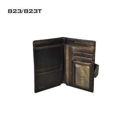 823TBK Color: Black Old Fashioned Italian Leather Features: -With snap closure.-One clear ID window. Options: -Available in color and leather options. Construction: -Constructed of leather. Dimensions: -Dimensions: 6'' H x 4.5'' W.