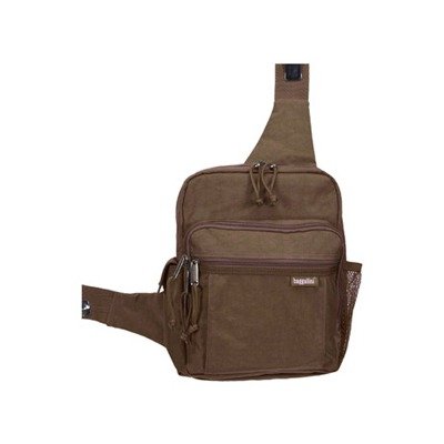 MES160CMU Color: Mushroom / Caspian Blue Features: -Made of European inspired woven nylon.-Hidden cell phone / PDA pocket.-Secure zippered inside pockets to keep things organized.-Contemporary one strap shoulder bag design. Options: -Available in a variety of colors. Dimensions: -Overall Dimensions: 13'' H x 10'' W x 4'' D.