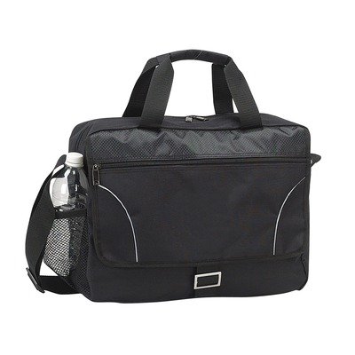 P3780.BLK Features: -Beneath the flap, pockets for phone, notes, business cards and pens. Construction: -Constructed of 600D polyester trimmed with nylon. Color/Finish: -Mesh pocket on the side, dual handles and an adjustable shoulder strap finish. Dimensions: -Padded sleeve inside holds a 16'' laptop.-Dimensions: 12'' H x 16'' W x 5'' D.