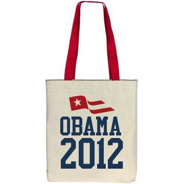 You think Barack Obama should be President for another term? Let everyone else know too! This flag features a single star with three bold stripes that appears to be waving in the wind. This flag design can be used perfectly for any patriotic design, state pride tee-shirt, political tee, or even military designs. Reuse to Reduce. Smaller than our popular Canvas Tote Bag, this durable color-handled bag will soon be a contender for most popular canvas tote. Use this customized tote for an eco-friendly companion to the store, beach or library. Wherever you take it one thing is for sure...it's going to make a fashion statement! All of our items are completely customizable. You can pick your own product, size, and color. You can choose from our art, or upload your own art of pictures to create a completely customized product.