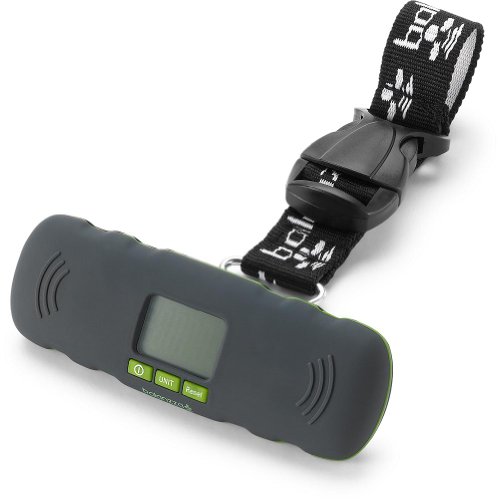 The smallest and lightest on the market, this scale is ideal for travel - to help avoid overweight luggage fees - as well as for home or office use. Easy to carry, in an ergonomic and compact shape that lets you lift objects with less stress to your hands. The patented Balanzza scale is horizontally positioned with a screen on top and a strong, webbed nylon strap to secure the object to be weighed. Weight capacity: 100 lbs/44kg. Operates with two CR2032 batteries (included). Weighs .2 lbs/.100 kgs.