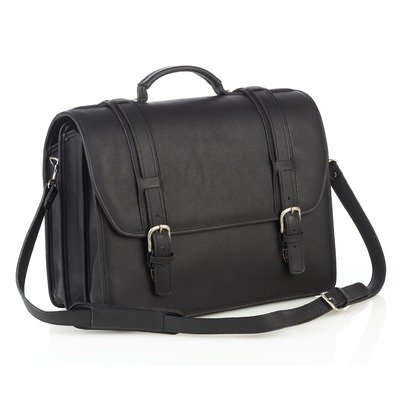 312-BC-Black Color: Black Shown in Tan Features: -Available in Black, Brown, and Tan.-Leather is scratch resistant, supple, and sturdy.-Made of premium full-grain hides.-Leather with a soft hand and visible grain pattern.-All items come with solid brass buckles, hooks, and rivets, with an easy to open clasp option.-Triple compartment.-Adjustable and detachable shoulder straps with shoulder pads.-Handles that are attached to steel metal bar for extra strength.-Protective flexboard with foam.-Accommodates legal size documents.-Contains an inside pocket with pen/calculator/cd/ business card organizer. Includes: -Removable Laptop Case included. Color/Finish: -Finished with natural vegetable oils. Dimensions: -Overall Dimensions: 12'' H x 16'' W x 8'' D.