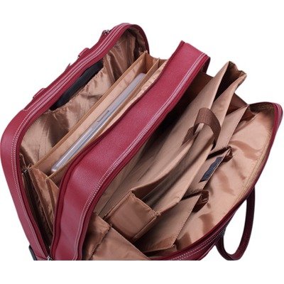The Detailed Description of Stafford 17" Leather Rolling Laptop Tote Color: Crimson
